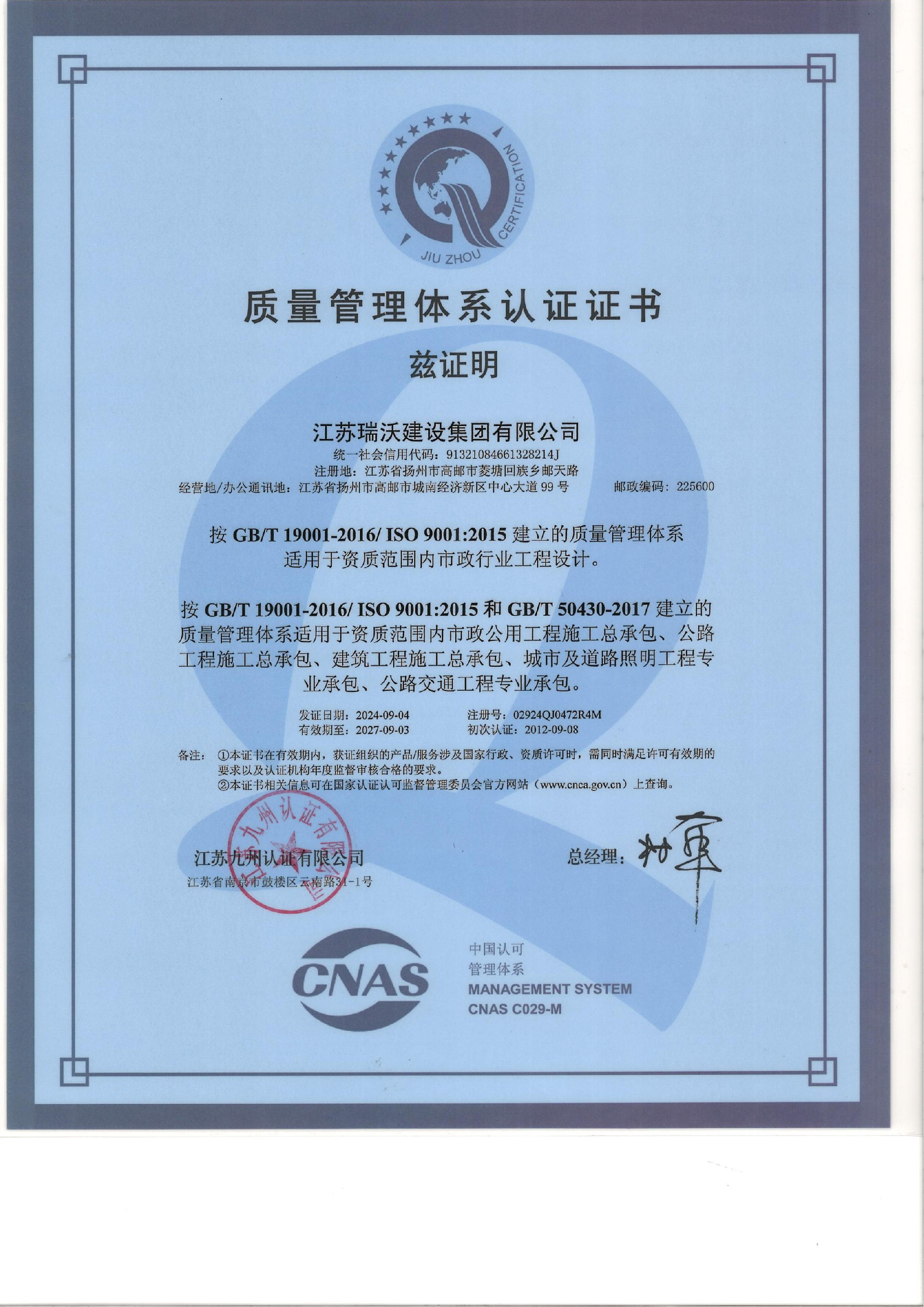 江蘇瑞沃建設(shè)集團(tuán)有限公司成立于2007年,是一家以市政、交通工程建設(shè)為主導(dǎo),集房屋建筑、交通安全設(shè)施、城市道路照明工程、電力工程、隧道工程、航道工程及投融資為一體的綜合性企業(yè)。企業(yè)注冊(cè)資本60000萬元,現(xiàn)有各類技術(shù)人員580人,其中中、高級(jí)以上人員498人,注冊(cè)類人員268人,一、二級(jí)建造師166人。公司榮獲“江蘇省建筑業(yè)優(yōu)秀企業(yè)”、“江蘇省五一勞動(dòng)獎(jiǎng)狀”,連續(xù)多年被評(píng)為“揚(yáng)州市先進(jìn)企業(yè)”、“江蘇省建筑業(yè)百強(qiáng)企業(yè)”,連續(xù)八年蟬聯(lián)百強(qiáng)企業(yè)基礎(chǔ)設(shè)施類第一名。