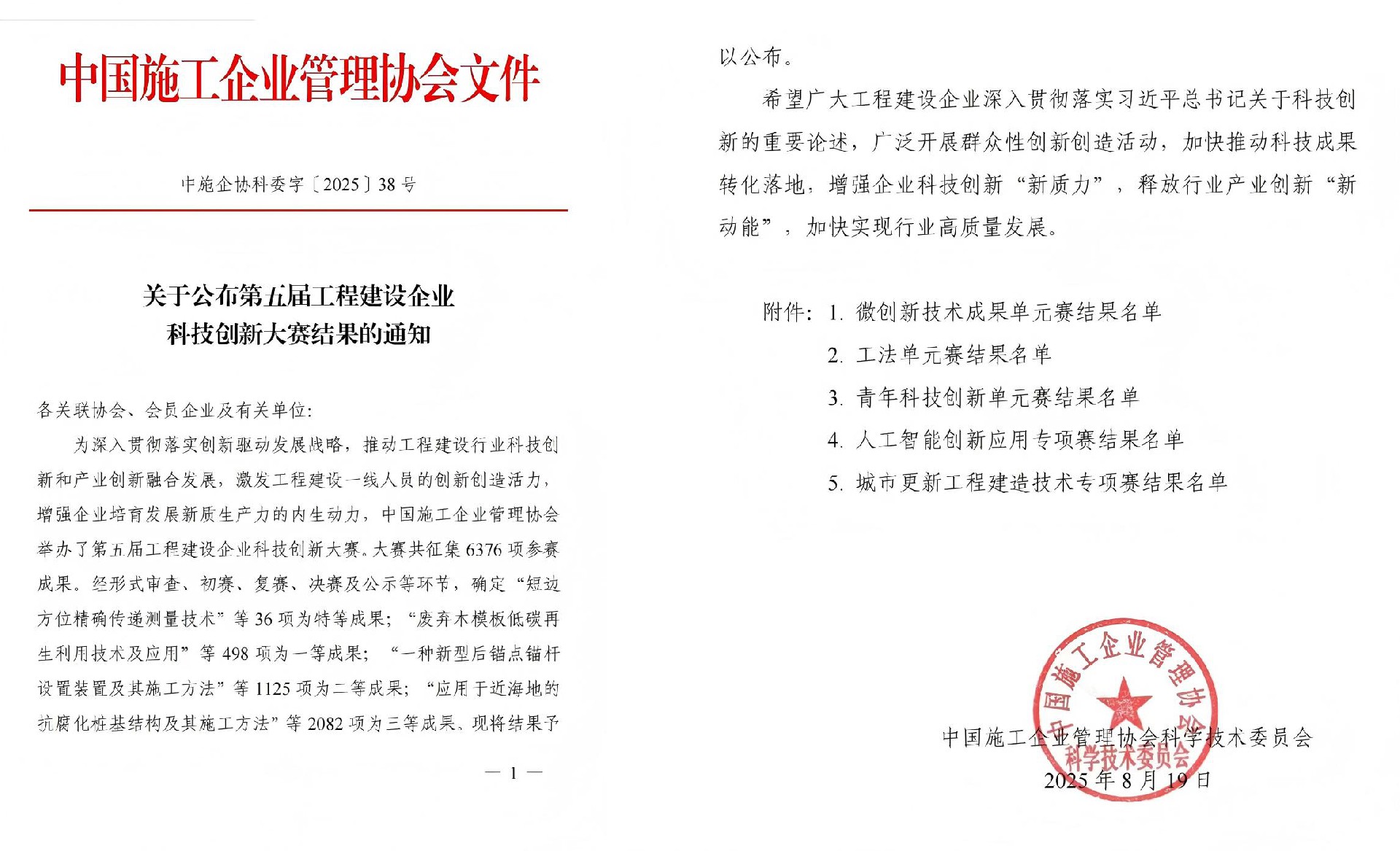 近日,第五屆全國工程建設(shè)企業(yè)科技創(chuàng)新大賽獲獎(jiǎng)結(jié)果出爐,集團(tuán)在“青年科技創(chuàng)新單元賽”中斬獲一···